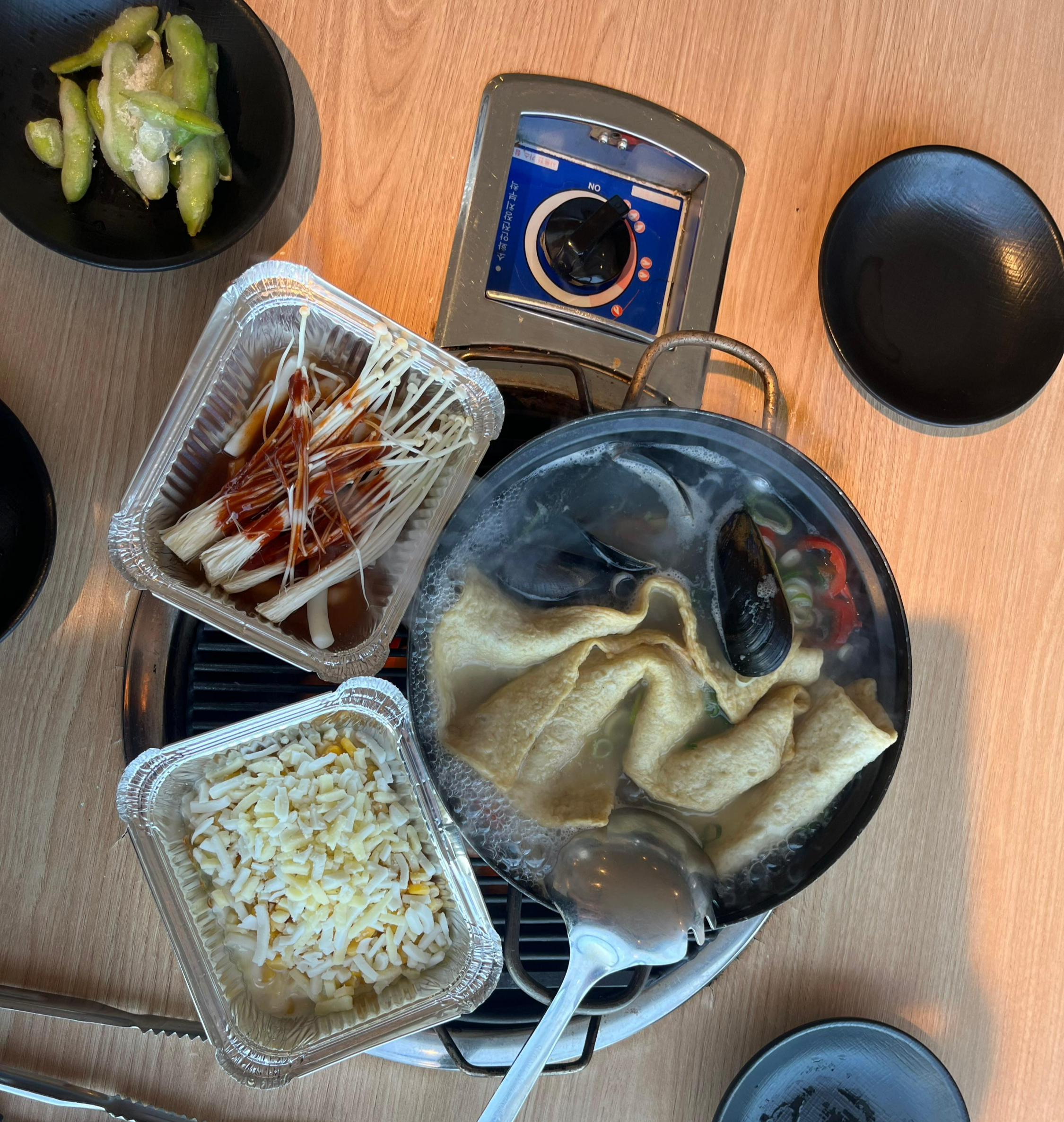셀프바에 있는 재료로 콘치즈, 떡볶이등 만들어 먹을 수 있습니다.